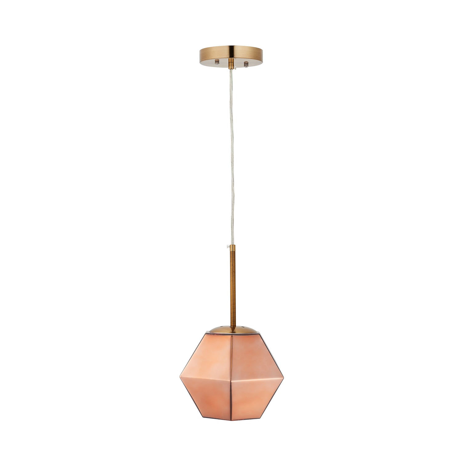 CARRO HOME Pegasus Jewel Tone Glass Pendant Light Collection bring a boost of brightness and a touch of glam to any arrangement with this one-light glass pendant. Crafted with a circular brass finish canopy, this light fixture features a hexagonal glass shade with specialty jewel tone color finish. Your kitchen, dining room or family space gets an instant boost with this sophisticated pendant lights.