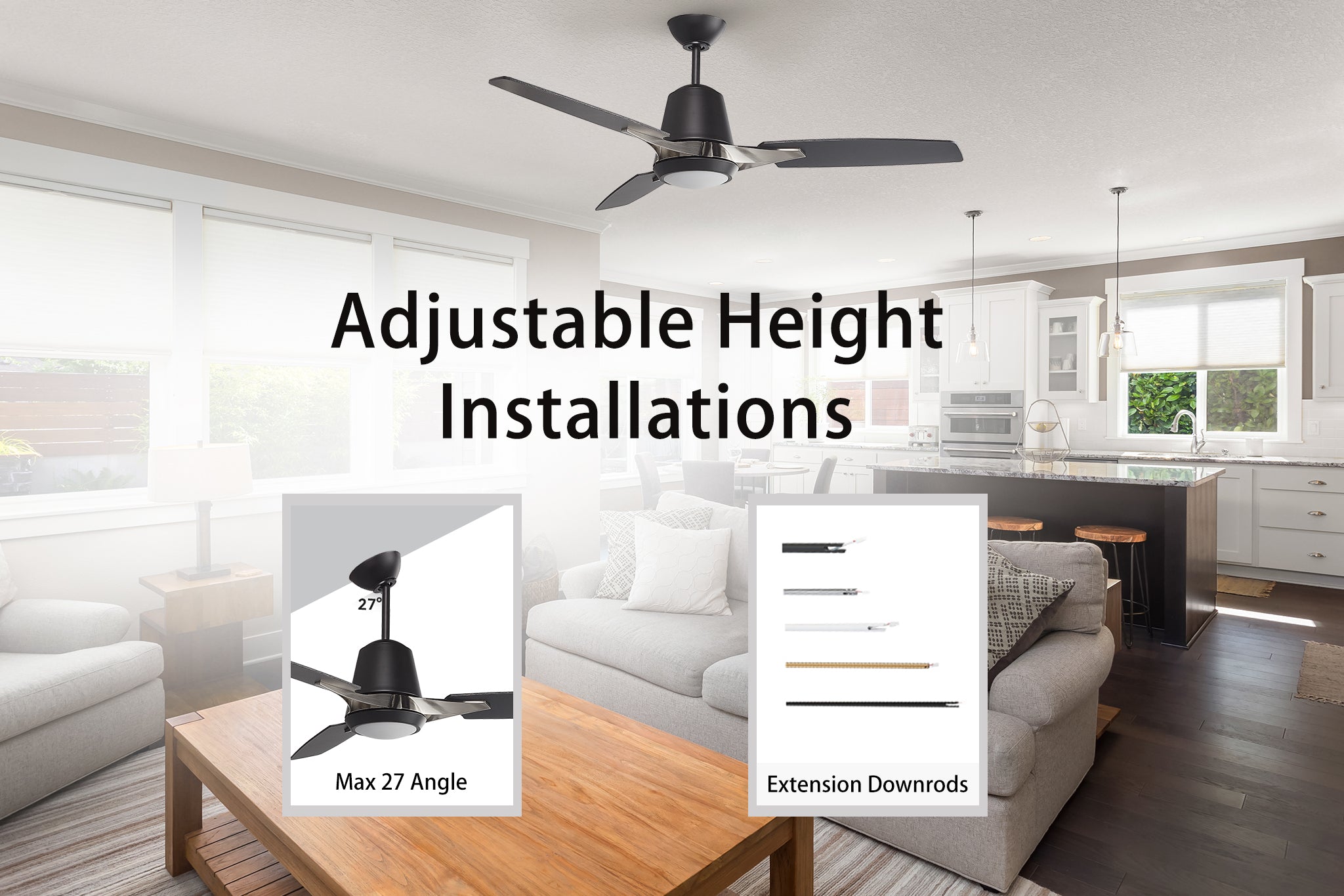 - ANGLED MOUNTING: Max 25°~27°angle,an extended downrod is required.