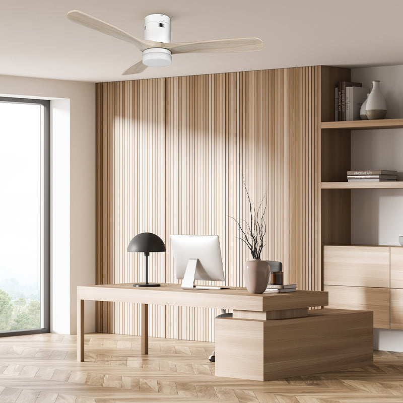 A smart ceiling fan can help to improve air circulation and reduce the build-up of heat and stuffiness. An Alexa enable ceiling fan can also help to reduce energy costs by allowing you to use the air conditioning less. Brighten up your home office with the fan like flush mount Ranger.