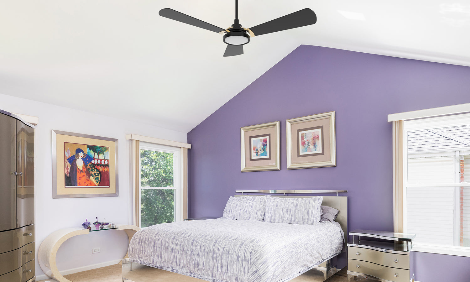 Installing a ceiling fan with dimmable led light kit in a bedroom allows you to adjust the light brightness for reading or sleeping.