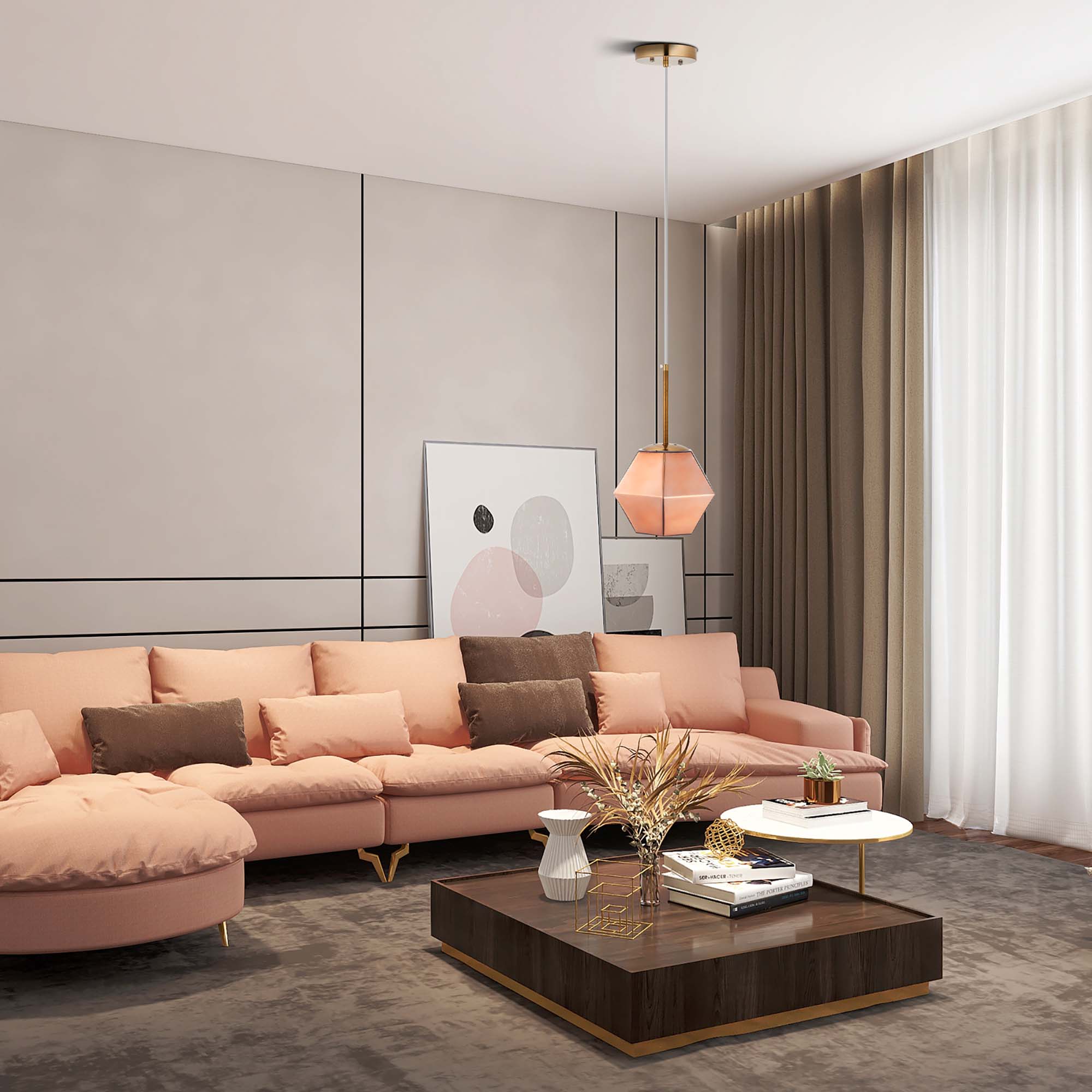 CARRO HOME Pegasus Jewel Tone Glass Pendant Light Collection bring a boost of brightness and a touch of glam to any arrangement with this one-light glass pendant. Crafted with a circular brass finish canopy, this light fixture features a hexagonal glass shade with specialty jewel tone color finish. Your kitchen, dining room or family space gets an instant boost with this sophisticated pendant lights.