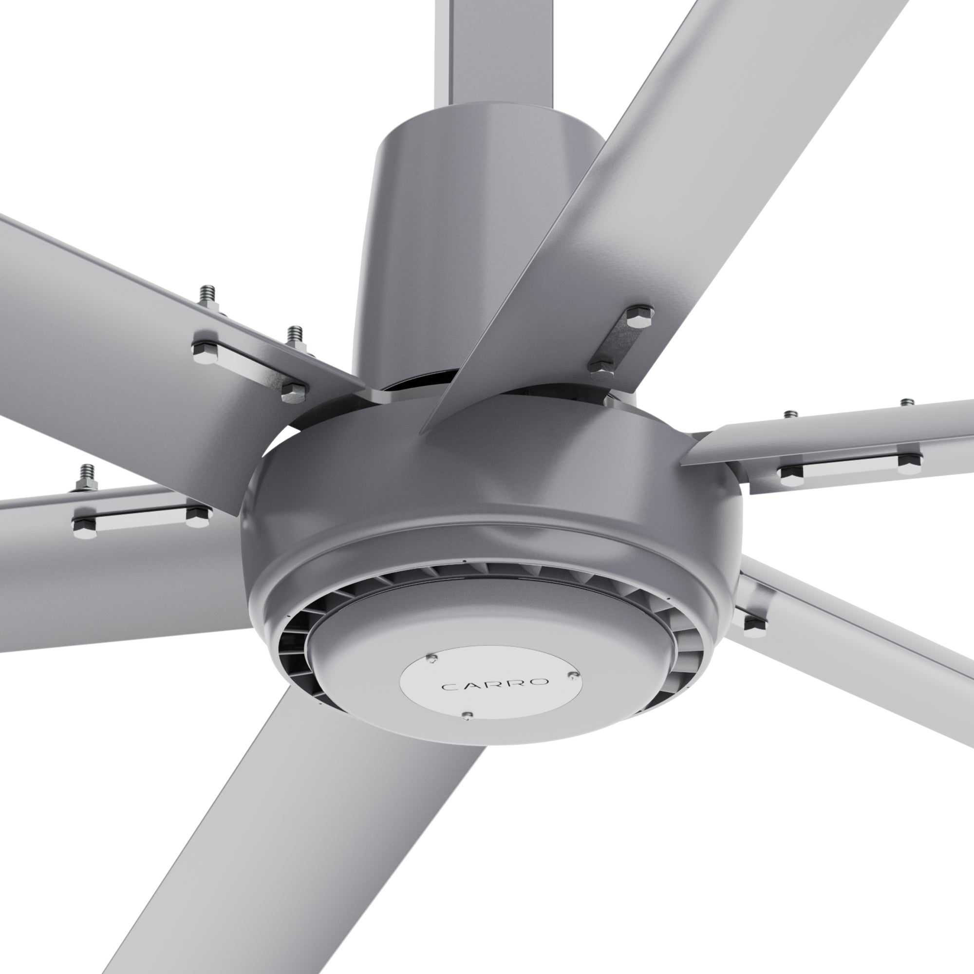 Looking for a Carro Smafan high-volume, low-speed (HVLS) ceiling fan that combines style and cooling efficiency? Meet the Carro Smafan Zenon Series in modern Silver-Gray. This commercial overhead fan provides quiet, comforting air movement with ease. Available in 8ft, 10ft, and 12ft models, it features six extruded aluminum blades with winglets, finished in sleek silver and treated with bright oxidation for enhanced durability. Equipped with a potent Neodymium Magnet Direct-Drive Motor, its advantage of significant torque offers high efficiency and whisper-quiet airflow, making it an outstanding choice for diverse indoor location, spanning industrial and commercial spaces, such as commercial kitchens, warehouses, sports arenas, manufacturing plants, gymnasiums, distribution centers, auto repair shops and agricultural facilities.