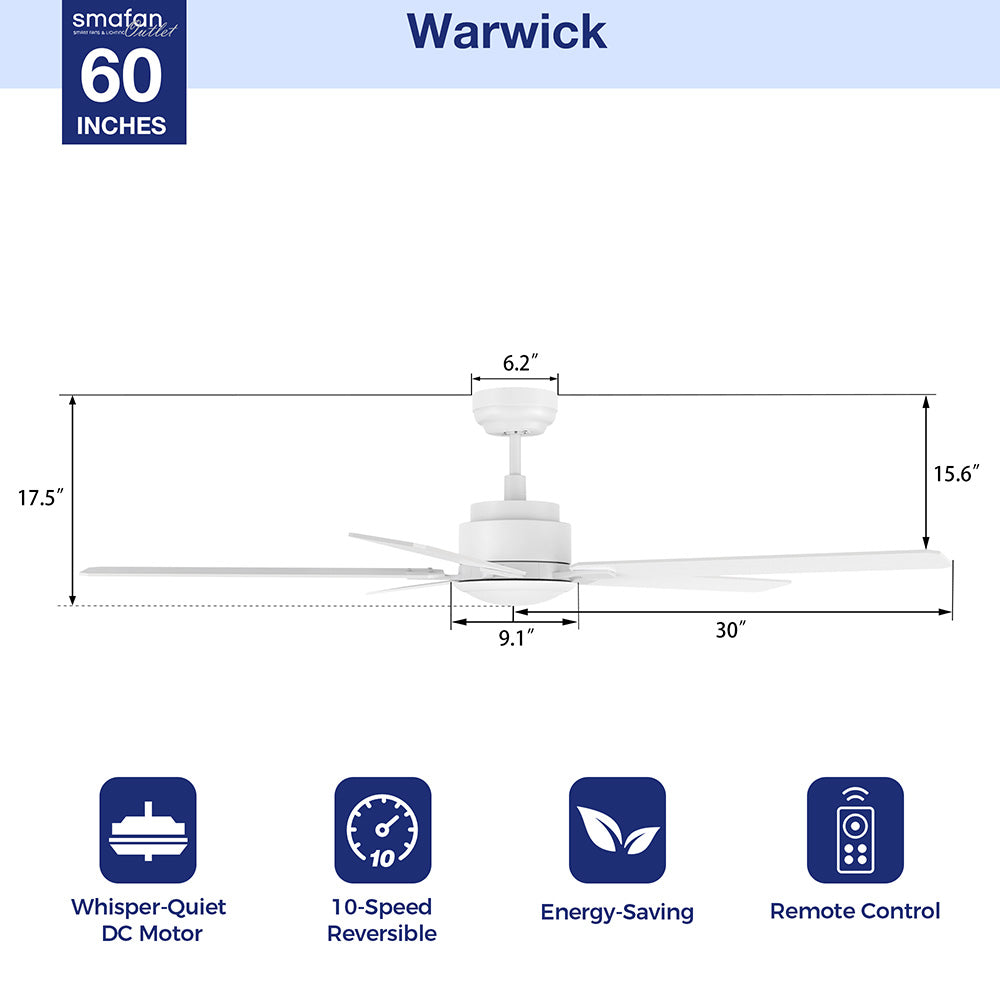Warwick Modern Ceiling Fan with Remote 60 inch No Light