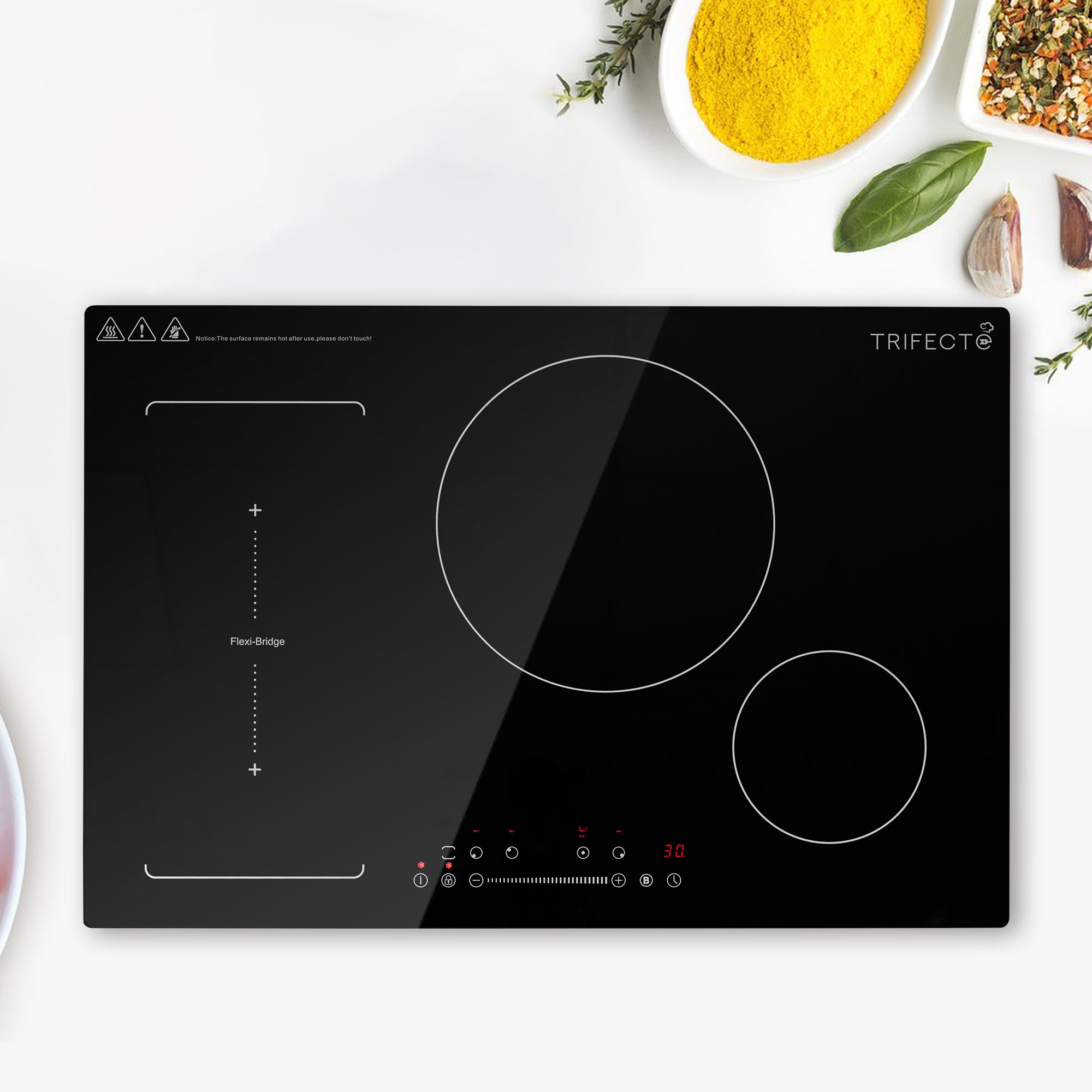 The Trifecte Fragrans 30 in. 4-element Induction with certified is a perfect combination of style and efficiency. Featuring four powerful cooking zones and multiple heat levels that range from simmering to rapid boiling, our induction offers unparalleled versatility for all your culinary endeavors. With user-friendly digital touch control and LED display, effortlessly switch between heat levels from boil to simmer, making cooking a breeze.