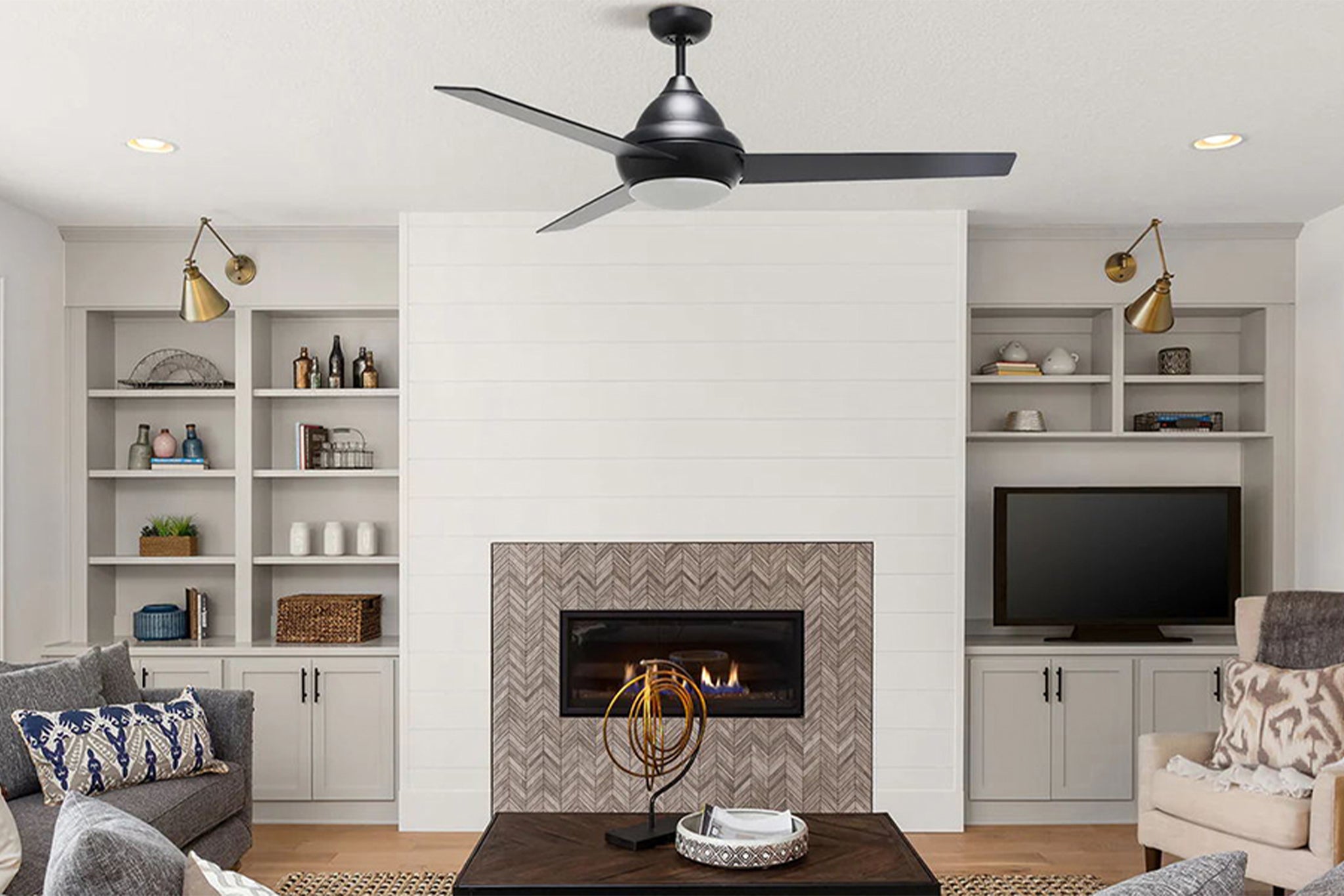 This Smafan Konfor 52" ceiling fan is designed with black finish, elegant Plywood fan blades, helping you keep your space cool, bright, and stylish. It also features with integrated 3000K LED warmlight and full function remote control.