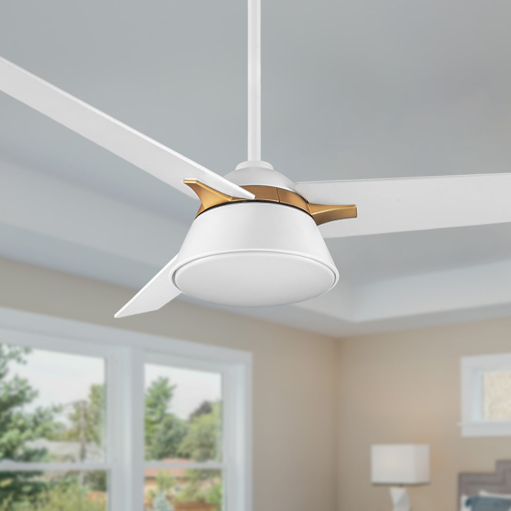 Designed with long squared blades in a black / white finish, elegant gold accents, and a flushed light cover, the Smafan Lismore 48” ceiling fan is sure to elevate any room in your home. The fan features an elegant exterior and an innovative interior to provide unrivaled cooling and lighting at the touch of a button.