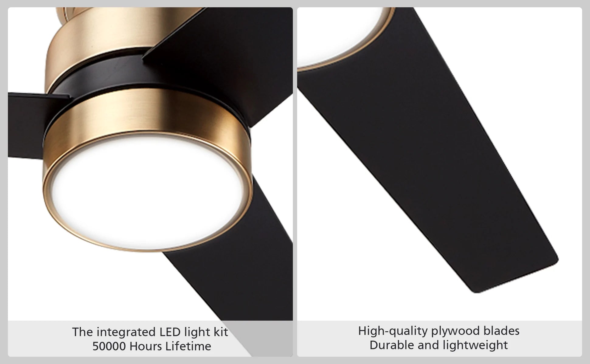 - WHISPER-QUIET MOTOR: Smafan black and gold ceiling fans with 3-speed reversible motor allows change the direction in summer and winter.