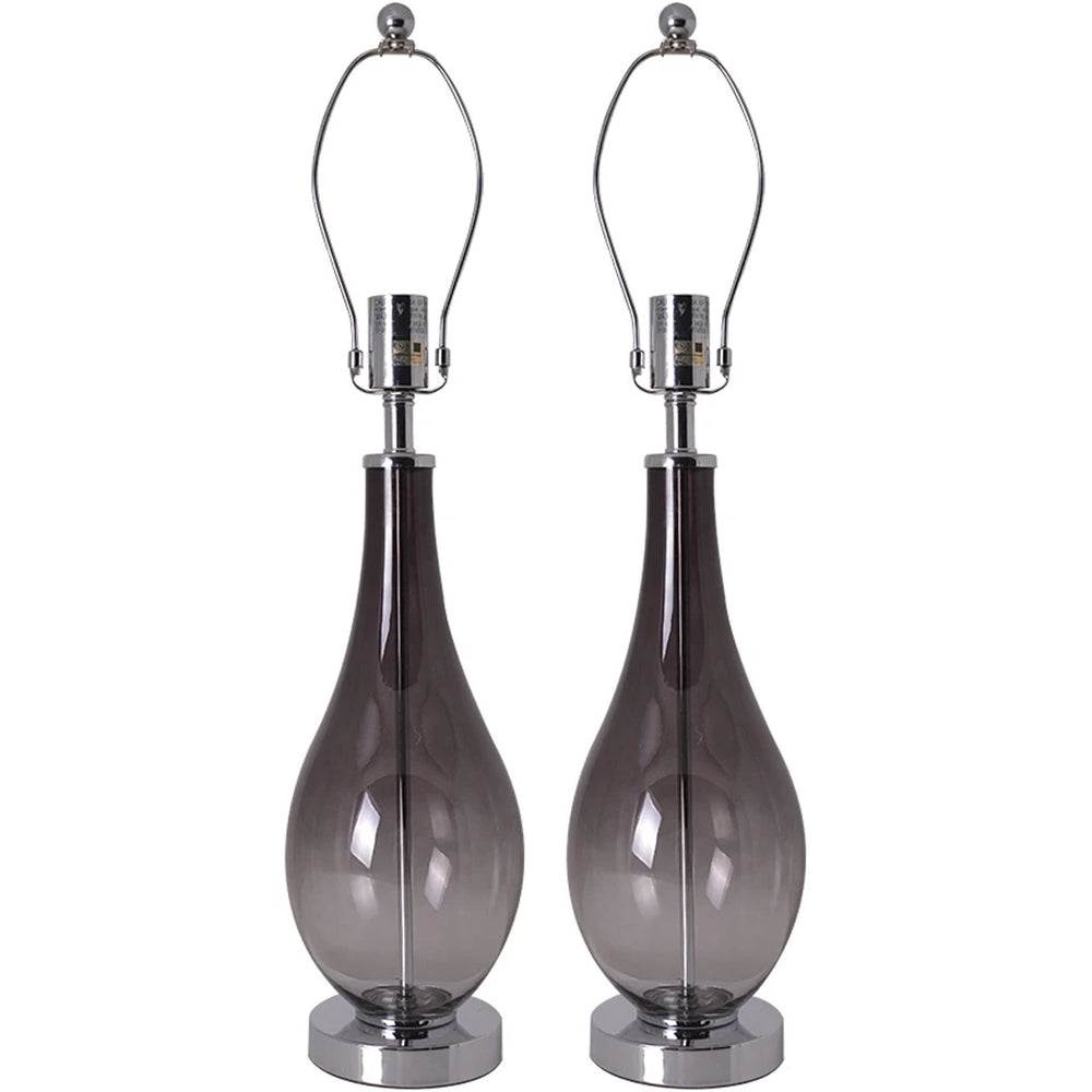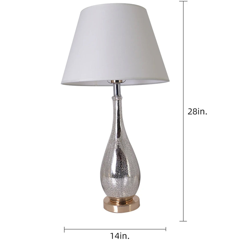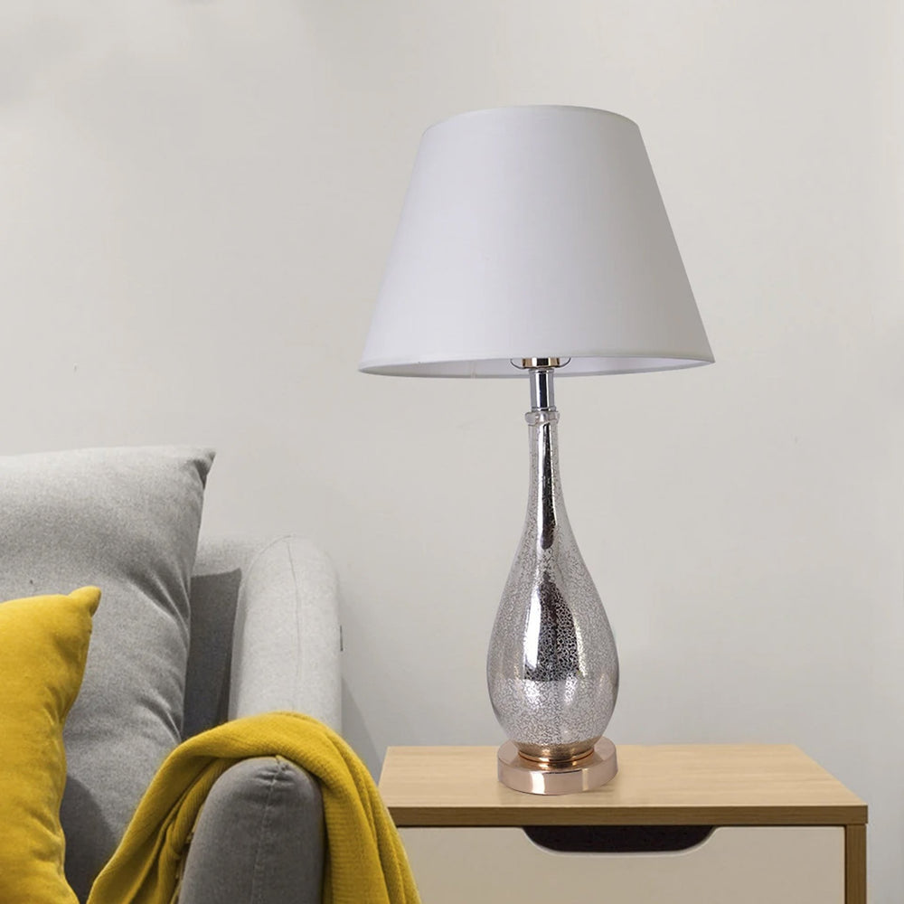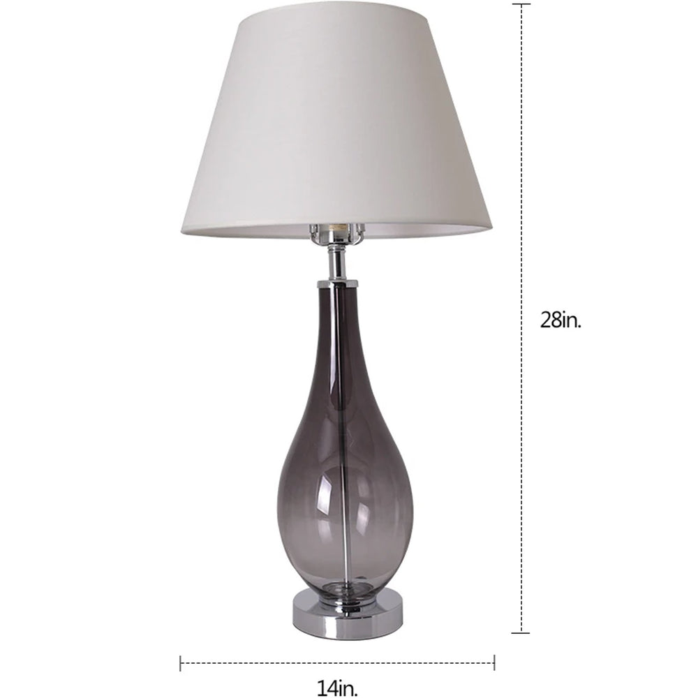 Get contemporary with this beautiful modern table lamp design. The sleek droplet body is impressive with an two-tone blue ombre finish and fluid lines. The striking translucent droplet glass base looks crisp and clean and contributes to the vertical interest of this updated design. Add a refined twist on your home lighting with Smafan Tulip table lamp collection. Enjoy the alluring style of this gourd silhouette glass table lamp. It's fashioned with a sturdy glass base with a brushed metal stand. It's topped with a drum shape shade wrapped in specialty fabric that provides a natural complement to the glass base.
