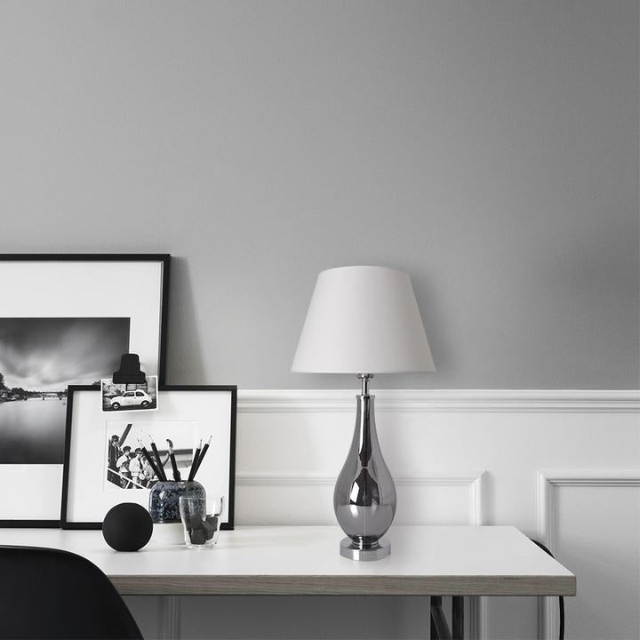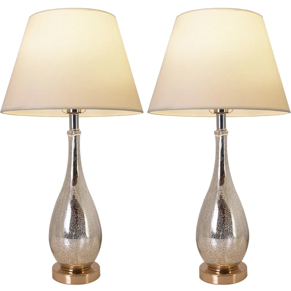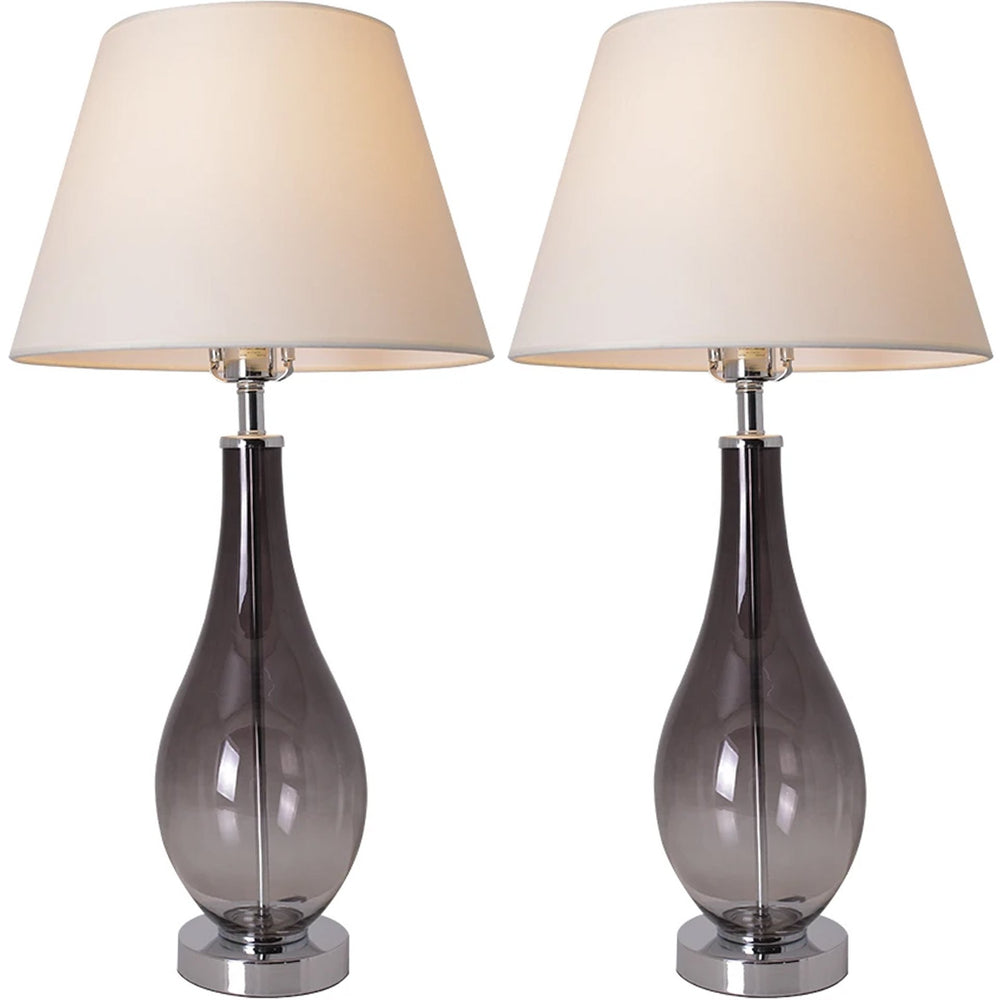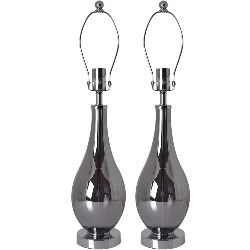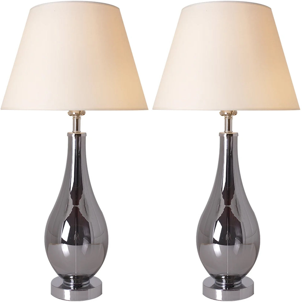 Get contemporary with this beautiful modern table lamp design. The sleek droplet body is impressive with an two-tone blue ombre finish and fluid lines. The striking translucent droplet glass base looks crisp and clean and contributes to the vertical interest of this updated design. Add a refined twist on your home lighting with Smafan Tulip table lamp collection. Enjoy the alluring style of this gourd silhouette glass table lamp. It's fashioned with a sturdy glass base with a brushed metal stand. It's topped with a drum shape shade wrapped in specialty fabric that provides a natural complement to the glass base.